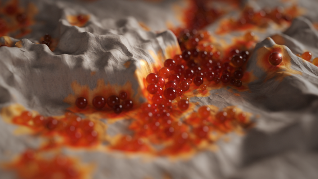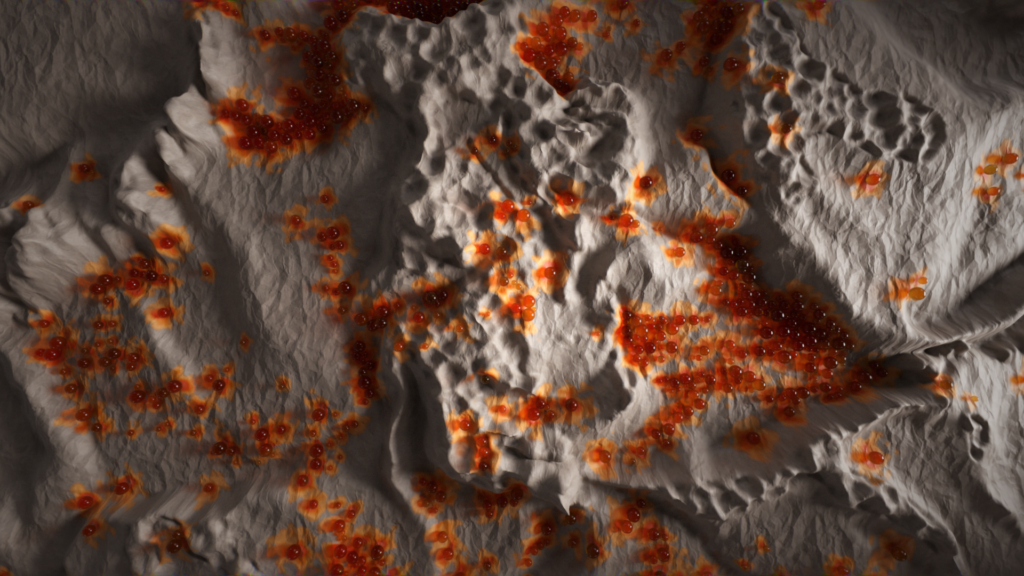 For our second Curiosity assignment, we had the opportunity to explore a workflow we have not worked with before. I chose to take a look into heightfield advection using heightfield noises and evolving the height attribute over time using the SOP solver in Houdini. Due to the interesting deforming shape I wanted to add marbles that “adapt” to the underlying geometry using a simple RBD sim and used the point position from the marbles to create a color falloff on the converted heightfield. It is a reminder to constantly keep moving and evolving, hence the name “adapt”.