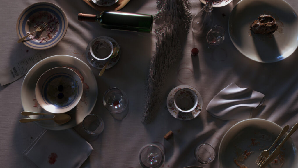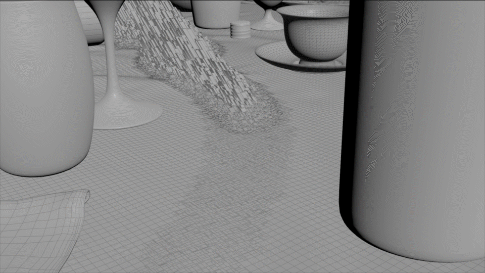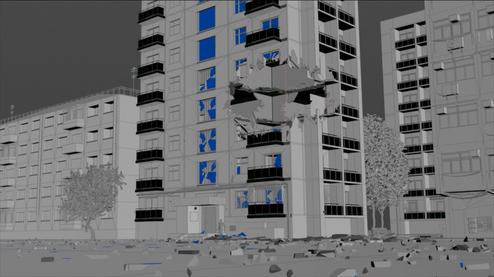 Each of us was completely responsible for his*her own shots including modelling, shading, texturing, FX, lighting in Houdini and rendering with Karma. We composited them using After Effects and Nuke. The five shots I was responsible for can be seen below the video showing each of the steps and include the table, car and dice shots as well as the shot of the burning building at the end.