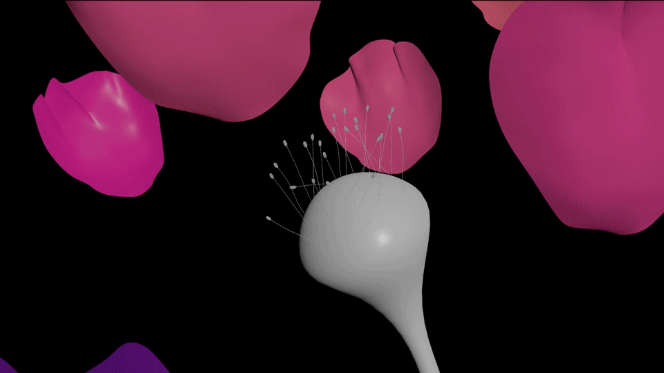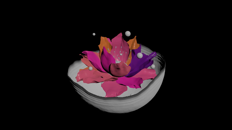 I started this project by exploring heightfield advection, experimenting with different parameters to better understand its behavior. Rather than simply animating surface noise, our aim was to let it naturally evolve over time through velocity-driven motion. Additional layers of noise were introduced to enrich the surface detail. The pearls were created using a straightforward RBD setup, while the floral growth was developed with a lightweight rigging approach combined with vellum simulations. The growth of the bubble itself was achieved using a pyro source spread workflow to achieve the desired result.