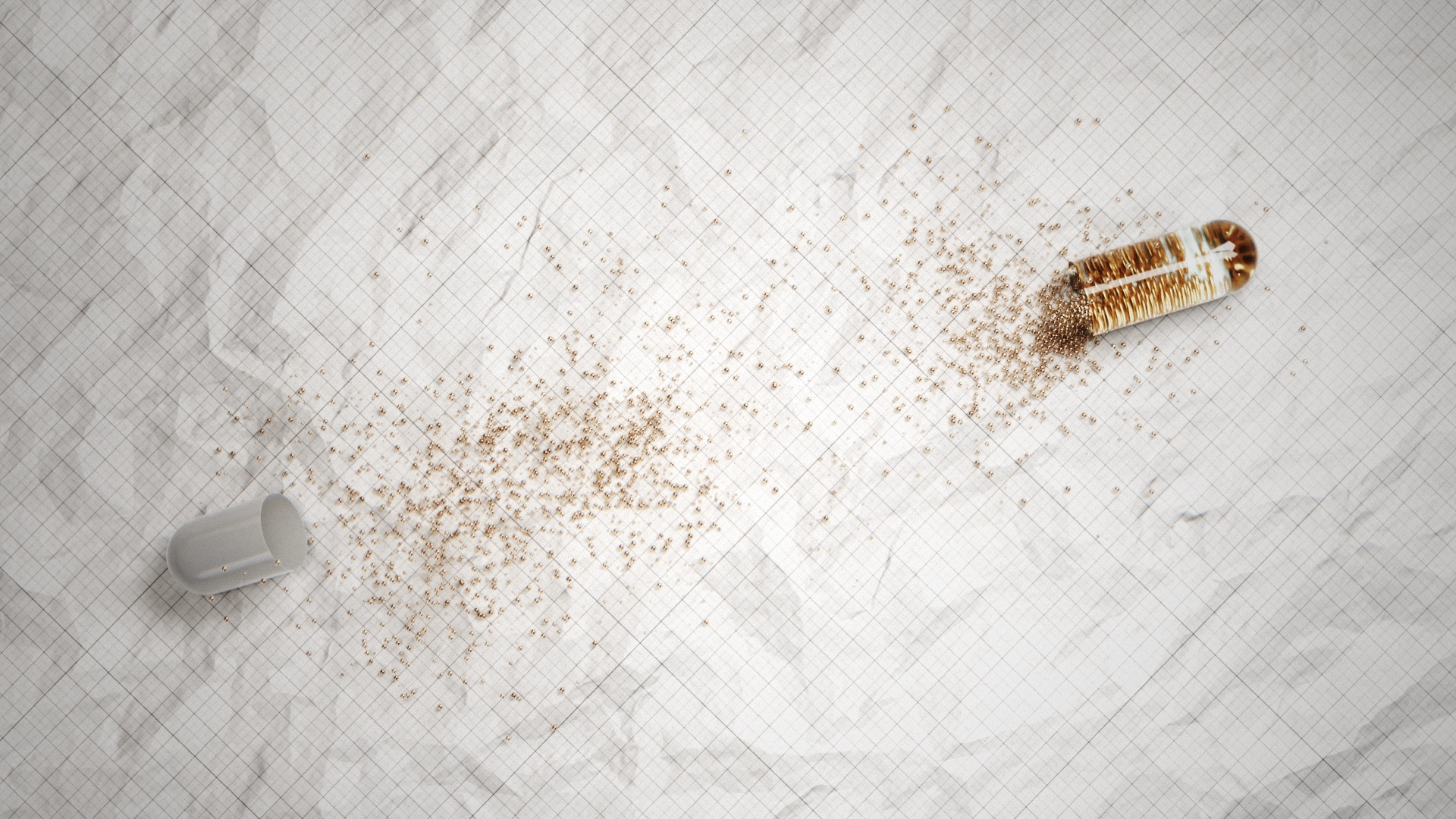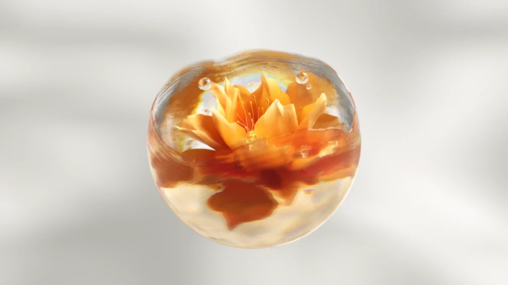 The aim was to create a stunning advertisement for the supplement, establishing its context as an essence extracted from a flower that smooths wrinkles and cavities. I made sure the product felt luxurious by using bright, warm tones and focusing especially on the shader of the small pearls containing the essence and its reflects and caustics. We also added gridlines to the underlying surface to create contrast and reflect the research that goes into supplement and cosmetics development. Overall, we wanted to give this project a smooth, flowing feeling resampling both timelapses and slow motion recordings.
